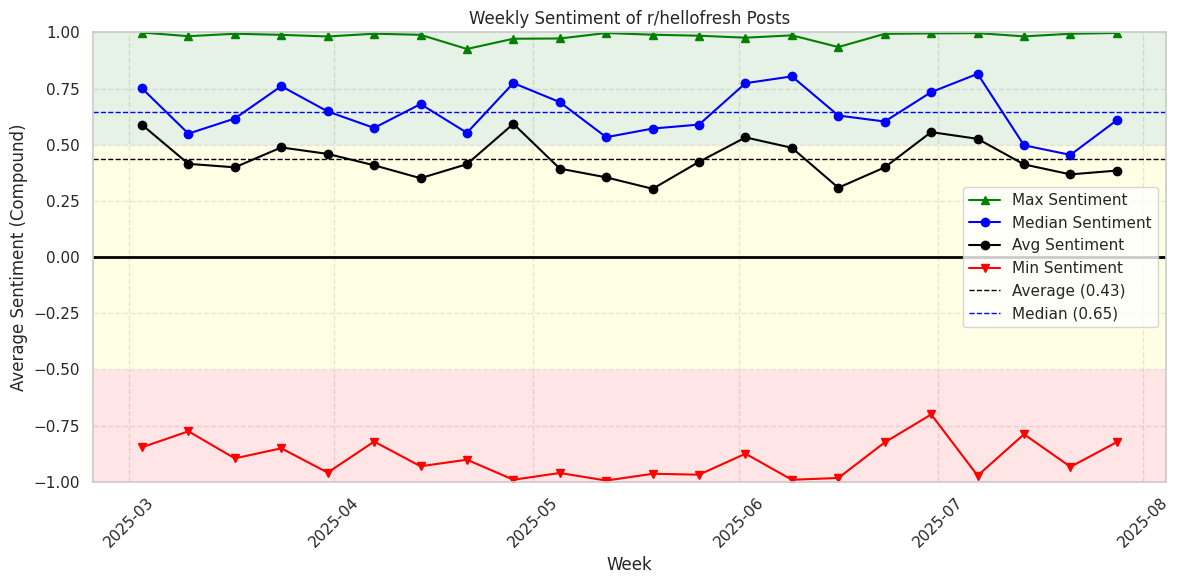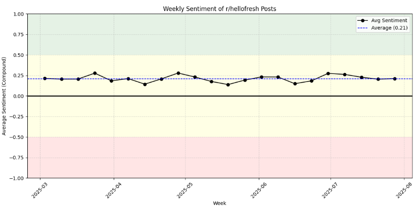 Sentiment aggregation - how is the r/hellofresh sentiment over time?