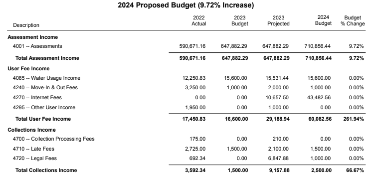 Once a year, residents are mailed a physical and pdf of their HOA’s Actual/Projected/Budgeted dollars for prior, current, and future years. Having lived in three different HOAs accross parts of the US (Midwest and Mountain West) I have seen a few version of these mailers. They mostly all look like multiple pages (mine has been 5-10 pages) of this: